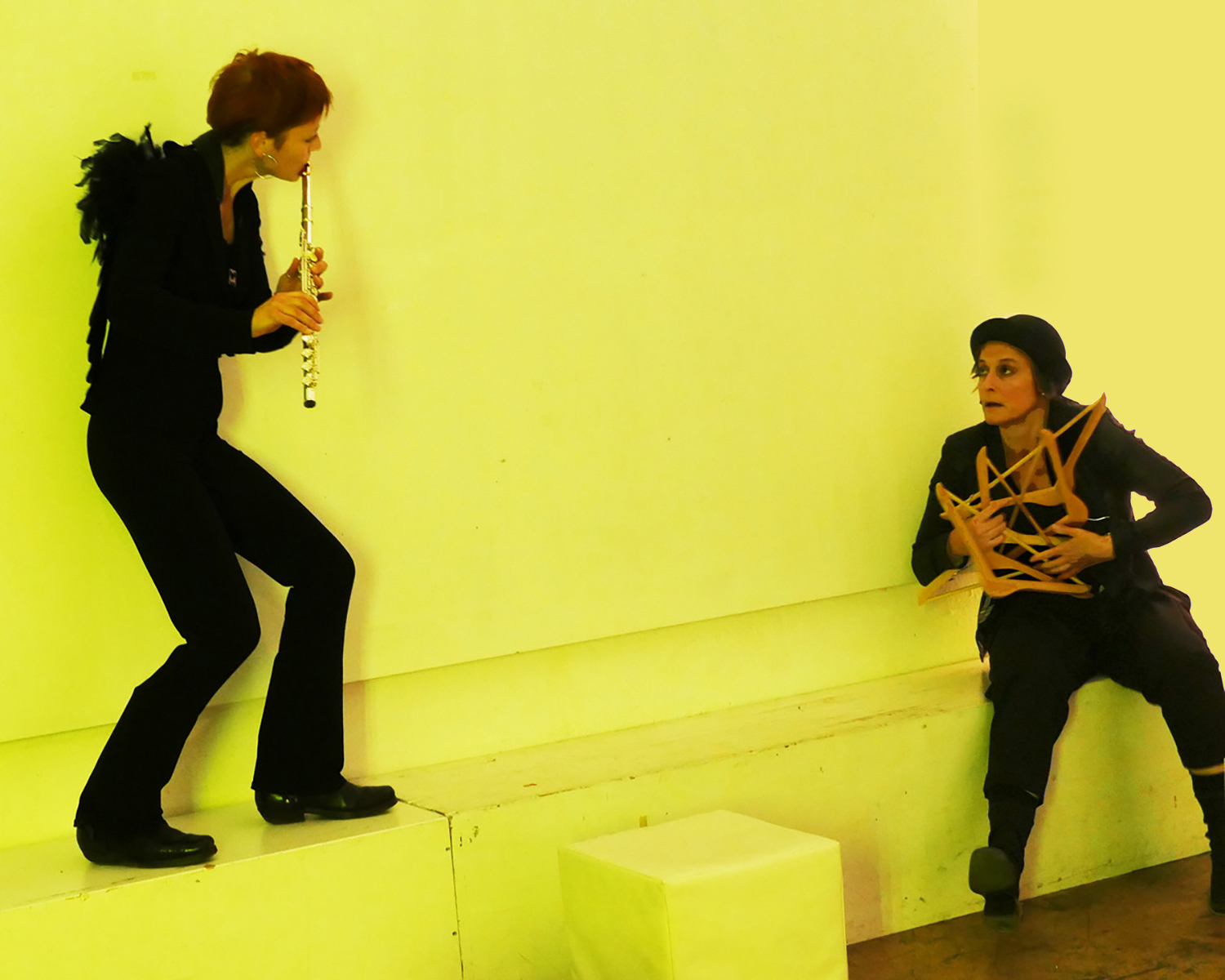 Mit Musik geht nicht nur alles leichter, es geht vor allem ganz anders. Die Aufgaben sind mental, musisch, metrisch, psychisch, physisch, fürchterlich, die Lösung mal logisch, mal nicht, mal trivial, mal radikal. Julia Wahren denkt und tönt laut und leise, Karina Erhard spielt Flöten, Saxophon und Loopgerät. Das Duo löst auf diese Weise schon seit längerem gemeinsam Probleme (erstmals in TRICOLORE 1 sowie in kurzen Interventionen im öffentlichen Raum), so wie es nur beherzte Musik- und Performerinnen können.